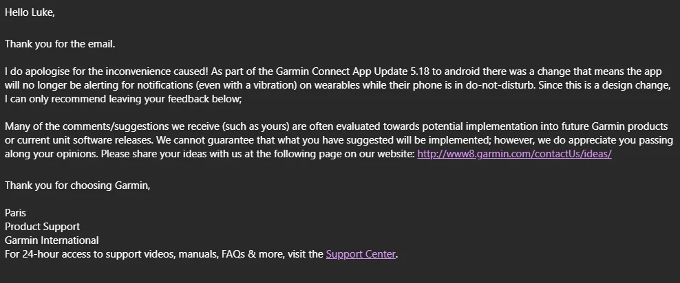 The pattern became clear after some investigation. When an Android phone enters Do Not Disturb mode, Garmin watches now respect that setting and suppress notification vibrations. Notification icons still appear on watch faces, but there’s no haptic feedback or screen illumination. Alarms and timers set directly on the watch continue working normally, which only adds to the confusion.