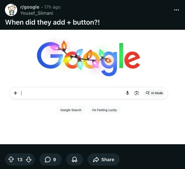 The change was first noticed by a Reddit user who posted about it on the r/google subreddit, asking when it was added. According to discussions in the thread, clicking the plus button reveals upload options for both files and images. Google appears to be positioning this as a way to let its AI review PDFs, photos, and other documents right from the search bar instead of making users jump through extra hoops.