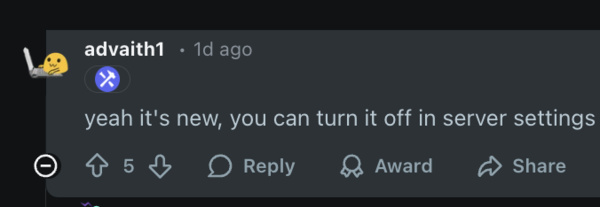 Under the same Reddit post that complained about the notifications, advaith1, a developer at Discord, said that the feature is new and that you can turn it off in server settings.