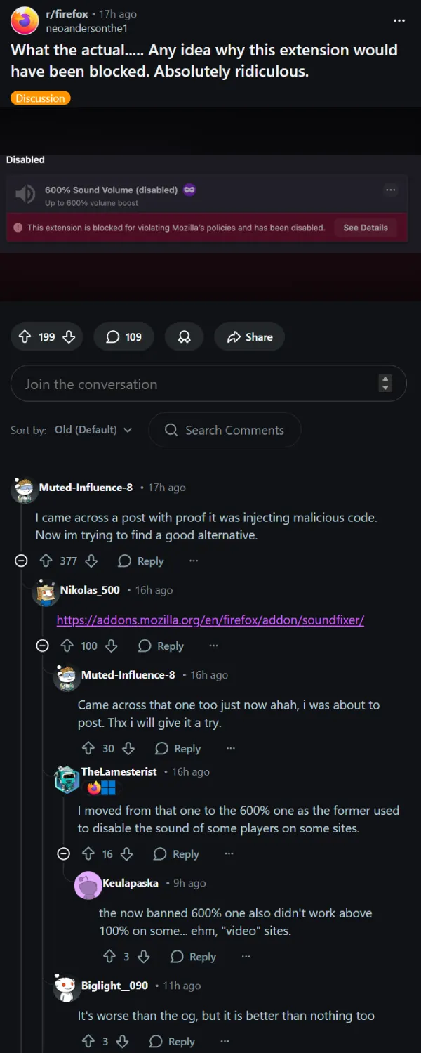 Mozilla has blocked the 600% Sound Volume extension for Firefox, citing a policy violation tied to affiliate manipulation, and users are now asking how long it was doing something sketchy in the background.