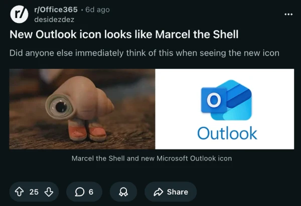 One hilarious post I spotted compares the new Outlook logo with Marcel the Shell.
