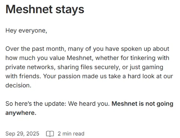 So on September 29, Nord posted a blog essentially saying “our bad, we’re keeping it.” According to their update, they heard the feedback and realized MeshNet’s value goes beyond simple cost-benefit calculations. The feature started as an experiment to give their community something different, and apparently that experiment still has legs.