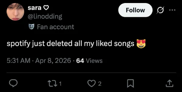 From what I was able to gather from user reports, the web player still seems to show songs correctly for most people. It’s the standalone apps on mobile and desktop where things fall apart. One user said they lost access to around 40,000 liked songs after reinstalling Spotify on their devices, though the web version still showed everything intact. Another reported their count dropped from 30,000 to about 9,800 after deleting the iPhone app.