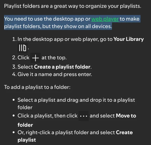 Spotify hasn’t made any official announcement about the rollout. The official help document still says that you need a web browser or the desktop app to create playlist folders.